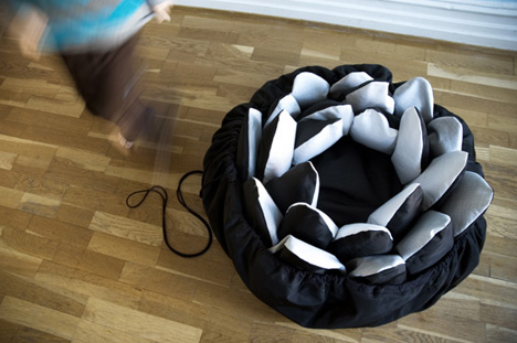 Designed by Ulrika Engberg and Kasper Medin- they have used the idea of a flower bud when the Dream Bag is closed which blossoms when open. A simple yet effectual concept.